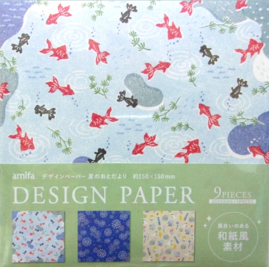 Single-sided origami paper featuring the summer festival designs. Slightly textured , white on reverse